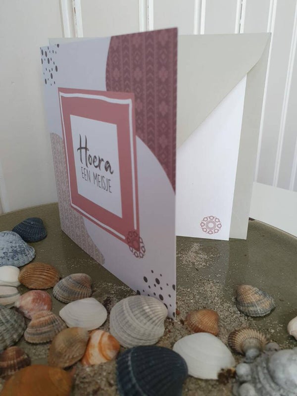 Luxe dubbele wenskaart met tekst: Hoera een Meisje.